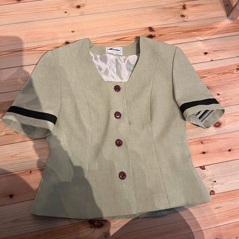 Vintage myk blazer i vakre farger. Passer godt til dongeri. Str. S, men passer godt til meg, som er str. 40.