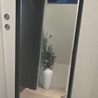 IKEA speil med hvit ramme. Passer til bruk i ulike rom for å gi refleksjon og økt romfølelse.