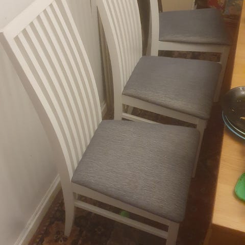 Spisebord med 2 forlengere. Gies bort. Bordet har normale slitasjer. Blir demontert i skrivende stund pga nytt bord. Følger med 4 stoler. Noen av de kan bære preg av katt. Så trengs en rens/vask😊 hentes forløpende på Rudshøgda.