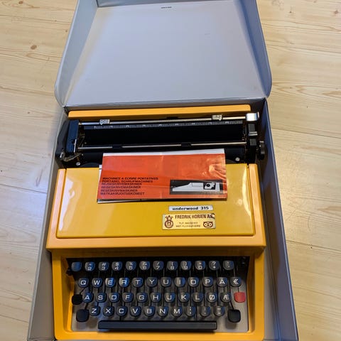 Retro kul Facit skrivemaskin med koffert. Skrivemaskinen har et mekanisk tastatur og er designet for manuell skriving. Kofferten er laget i et hardt materiale med bærehåndtak for enkel transport.