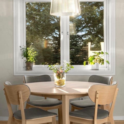 Wilma fra Lundbergs møbelfabrikk i Sverige er en vakker og solid spisegruppe i heltre eik. Perfekt til sørlandshuset eller sommerstedet!