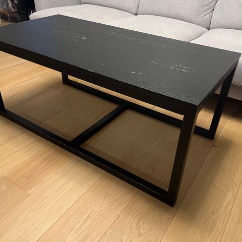 Salongbord i solid heltre eik. Det er malt med TreStjerner grå, og deretter pusset litt ned for å gi en rustikk følelse.