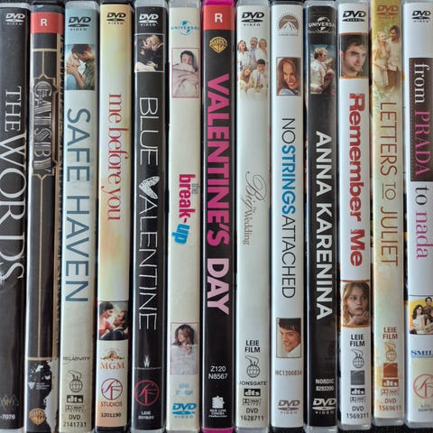 Romance DVD med 4 filmer fordelt på 2 plater. Filmene inkluderer The Price of Kissing, Fallen Angels, Something About Love og Rhapsody in Bloom. DVDene inneholder romantiske historier med ulike temaer og karakterer. Norsk tekst på alle.