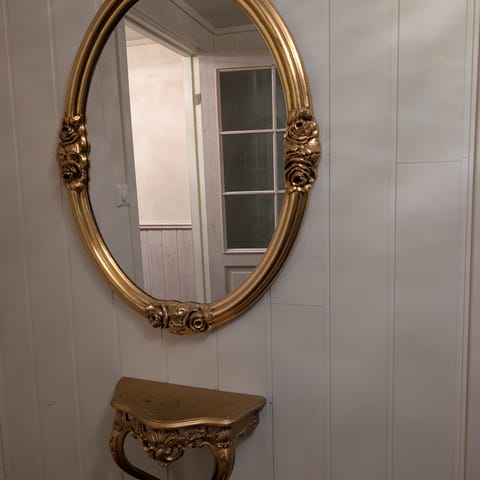 Antikk speil, gullfarget ramme, flotte detaljer