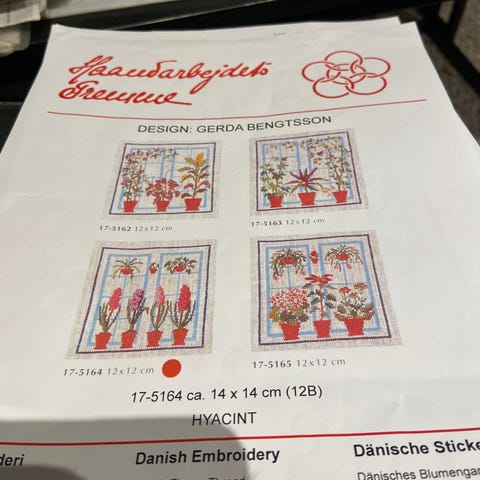 Permin of Copenhagen broderisett med blomsterdesign. Inneholder mønsterark, garn i flere farger og nål. Egnet for håndbrodering av putetrekk eller lignende tekstilprosjekter.