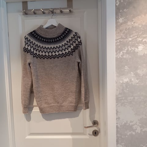 Hjemmestrikket ullgenser i god stand. Lengde 52 cm og bredde 43 cm. Kan hentes eller sendes mot betaling av frakt.