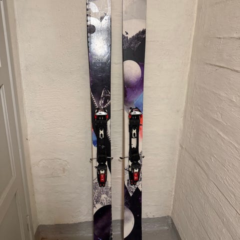 Salomon QST 106 ski med en bredde på 106 mm. Skiene har bindinger montert (Dynafit rotation 14). Det følger også contour hybrid feller. En fell har en fikset skade (se bilder) som ikke påvirker funksjonen.
