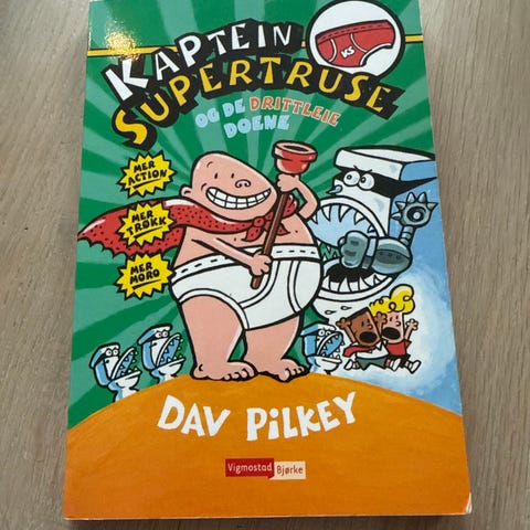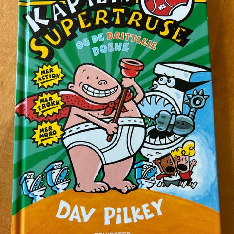 Kaptein Supertruse barnebok av Dav Pilkey. Boken har fargerikt omslag med illustrasjoner og er beregnet for barn.