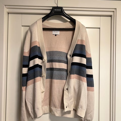 Grå/sort stripet Vailent herregenser fra Carlings, str. S (stor i størrelsen). Lite brukt, helt fin.