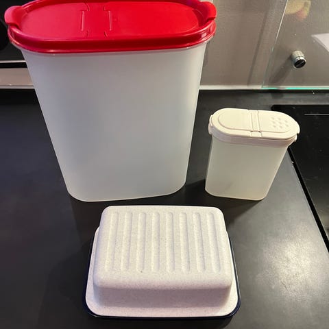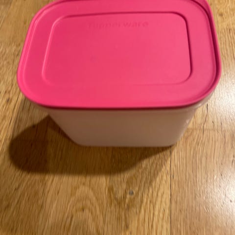 Tupperware mel boks . Lokket har litt skade . Se bilder . Selges billig for 70 kr . Selve boksen er i fin stand . Kan sendes med post nord for 70 kr eller fiks ferdig . Kan hentes etter avtale .