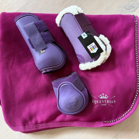 Horze Fleecepledd med lengde 115 cm i lilla farge. Laget av fleece materiale. Pent brukt, uten skader.