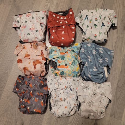 Veldig lite brukt hos meg, kjøpt brukt tidligere. Pris for alle. Komplette bleier