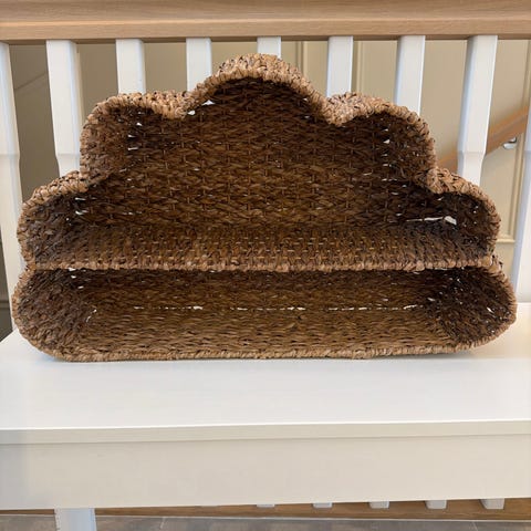 Moony bokhylle fra Bloomingville MINI er en praktisk og stilfull vegghylle laget av naturlige sjøgressmaterialer som gir barnerommet et varmt og naturlig utseende. Den måneformede hyllen er ideell for å lagre barnas favorittleker og andre små gjenstander. ( fra nettsiden)