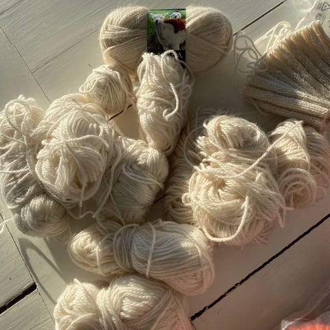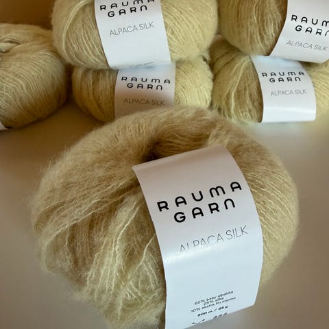 Utgått kvalitet fra Rauma. 10 nøster gul. Legger ved ett hefte med oppskrifter