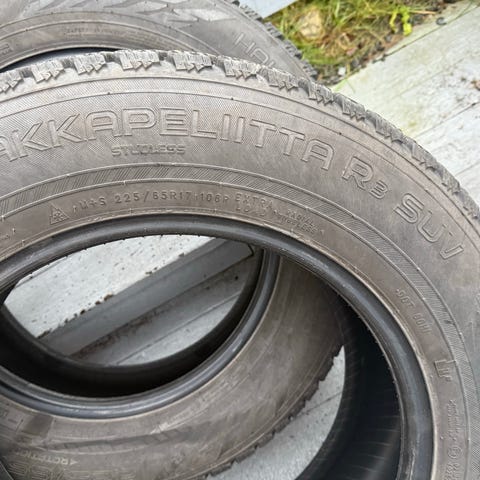 Veldig bra Hakkapeliitta R5 SUV piggfrie vinterdekk selges overgang til piggdekk. Dekkene har en mønsterdybde fra 7.5-8 mm igjennog er fra 2023, se bilde av DOT merking.