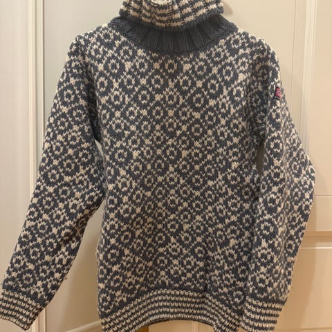 Selger en klassisk Devold ullgenser, produsert i Norge (Langesvåg).