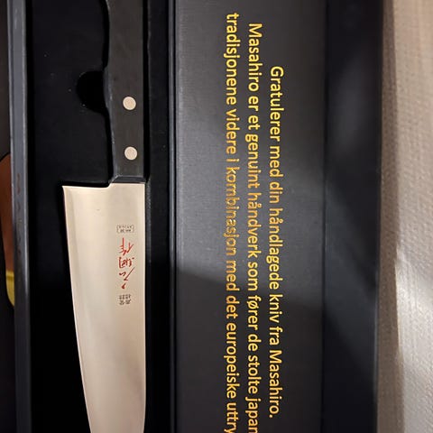 Masahiro kjøkkenkniv i rustfritt stål. Helt ubrukt. Nypris rundt 1000kr. Pris kan diskuteres