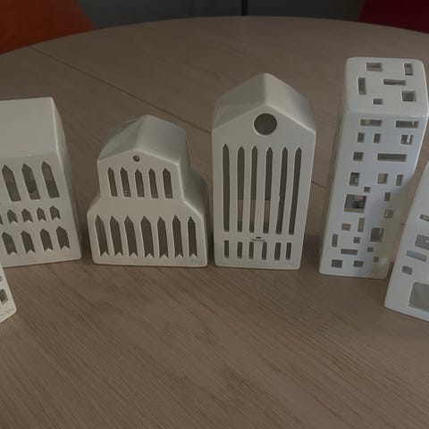 Kähler Urbania dekorasjonshus i keramikk. Sett med flere hus i forskjellige former og størrelser, designet for dekorasjon i hjemmet. Passer for bruk i alle årstider. Selges samlet.