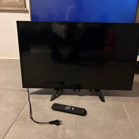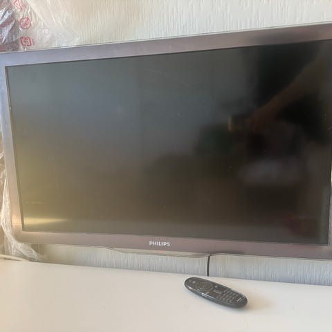 Philips TV med 40 tommers skjerm. Svart farge. Egnet for bruk som vanlig TV i hjemmet eller andre omgivelser. Har standard tilkoblingsmuligheter og veggfeste (fra IKEA). Har ikke TV-fot. Noen bruksspor på bakside og veggfeste.