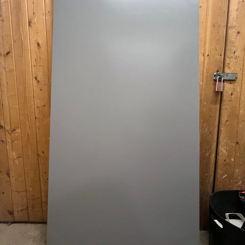Bordet har en liten skade i det ene hjørnet, men dette kan enkelt plasseres mot veggen. Jeg har brukt bordet som skrivebord hjemme.