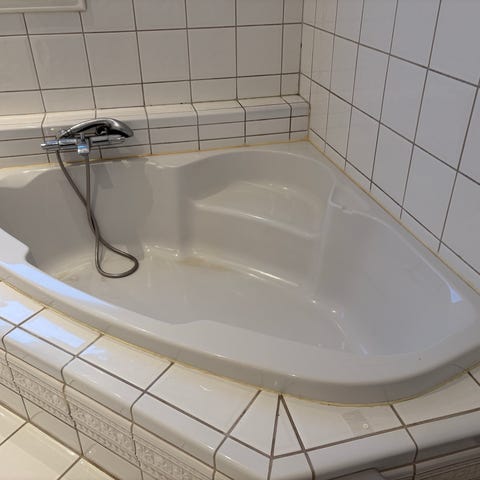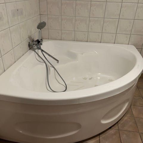 Badekar står i 2 etg i enebolig, men kort vei til ytterdør.