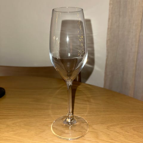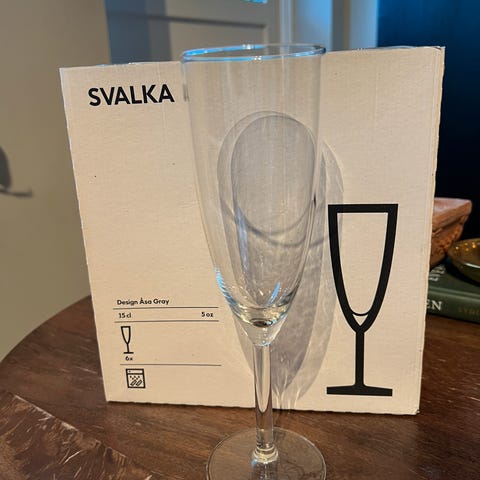 Rydder i skapene og selger 13 champagneglass. 11 av glassene er som bilde 1. To av dem er som bilde 2.
