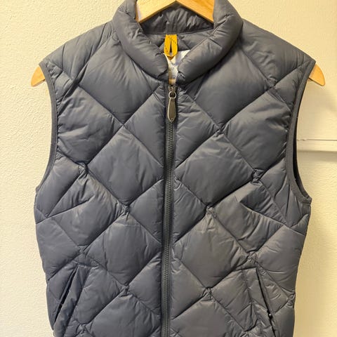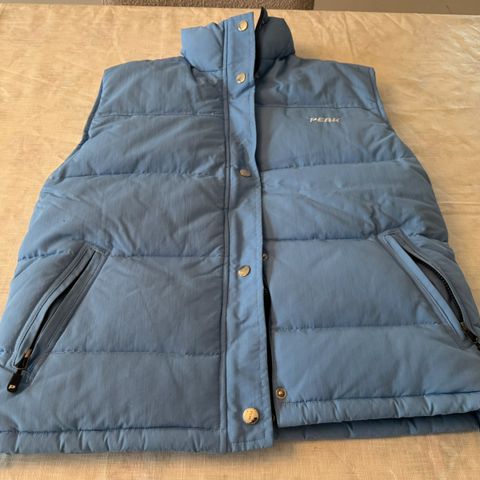 Hvit dunvest fra Peak Performance. Med avtagbar hette og flere lommer. Pent brukt.