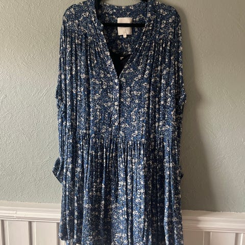 Cream kjole i størrelse 40 . Kjolen er blå og laget av bomull.