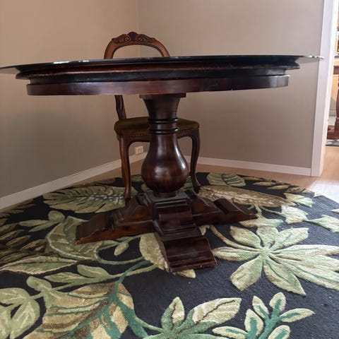Pent brukt antikk salongbord selges. Glassplate og hylle under. Mønster på sidene og på føttene. Rødbrunt tre. Fra ca 1965
