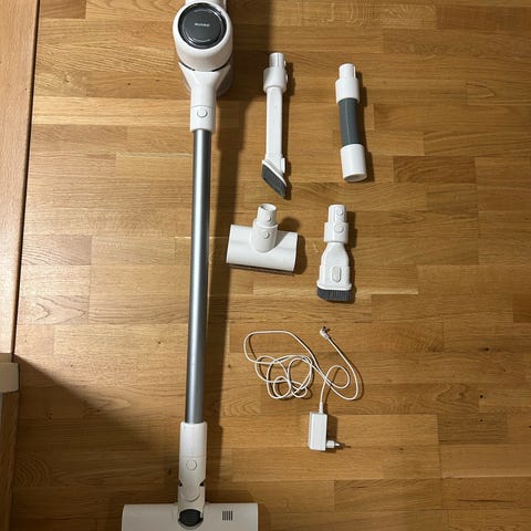 Dreame V10 støvsuger med 24V batteri. Trådløs design med tilbehør for gulvrengjøring. Passer til generell rengjøring i hjemmet.