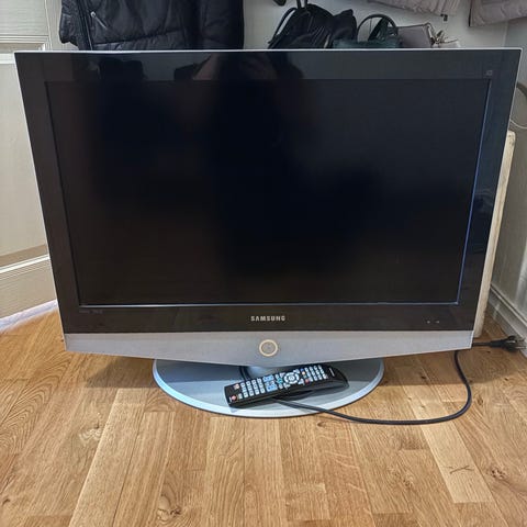 Samsung TV med fjernkontroll. Inneholder flere tilkoblingsmuligheter inkludert HDMI, RiksTV… se bilde.