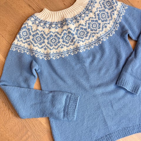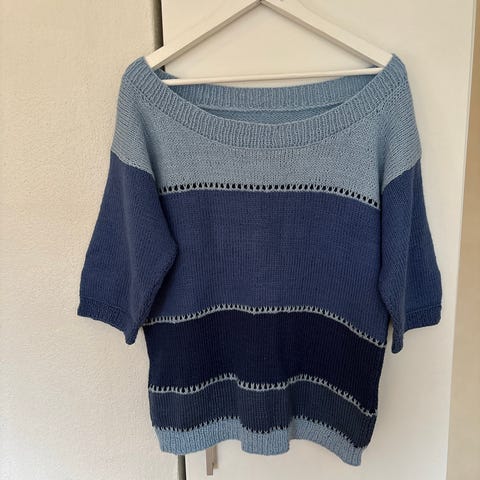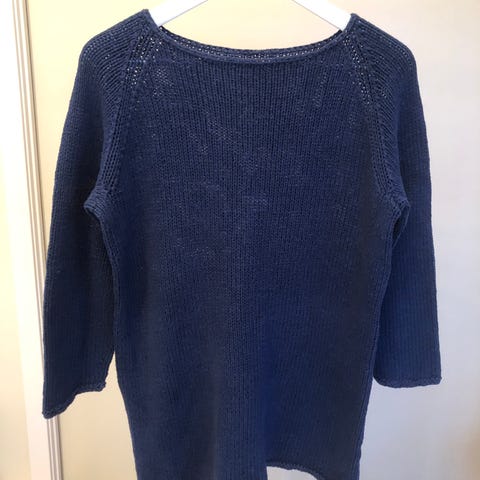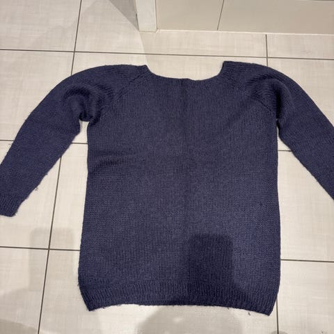 Håndstrikket mørk blå genser selges rimelig