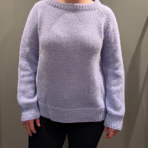Flott håndstrikket mørk blå genser til dame i mykt garn, usikker på hva garnet inneholder. Brukt maks 2-3 ganger.