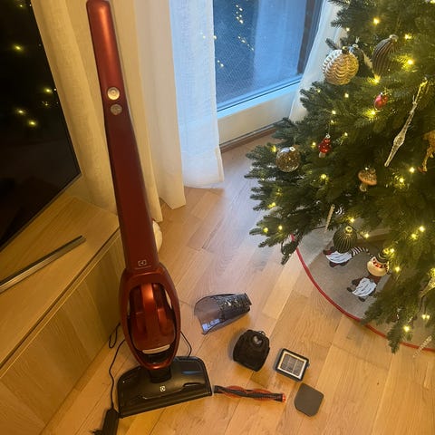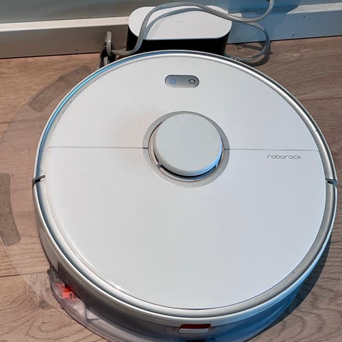 Roborock s5 med ladestasjon, vanntank og mopp.