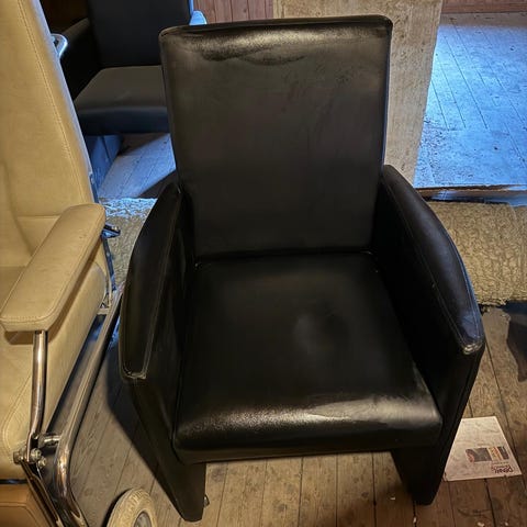 Stolene er brukt og har liten flekker, se bilde. Mørkegrått stoff. Gis bort mot henting.
