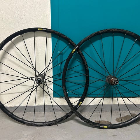 Selger et sett pent brukte Mavic Allroad Disc CL. Følger med boss for XDR- og HG-kassetter. Hjulene kan selges uten skiver og kassett for 2500, evt som avbildet med ny Sram 10-42-kassett og 160 mm Sram Paceline bremseskiver for 3500