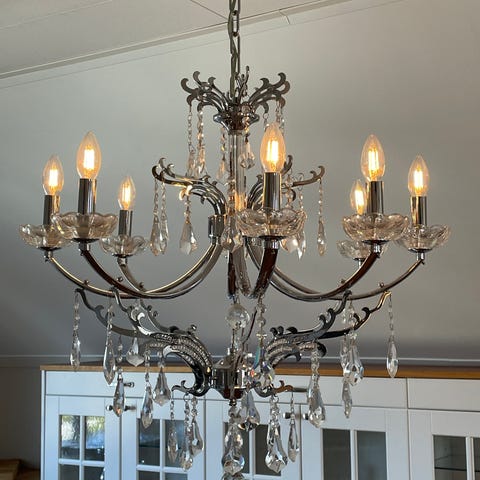 Veldig fin 6 armet taklampe selges. 62 cm diameter dimmbare lyspærer sendes med.