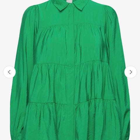Vila skjorte i størrelse S, grønn farge og laget av polyester. Skjorten har lange ermer med mansjetter og knappelukking foran.