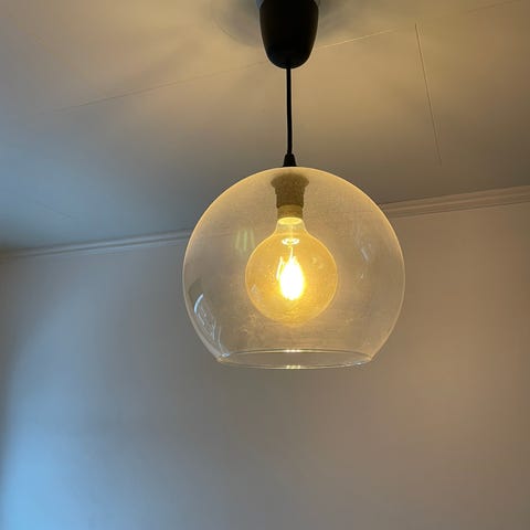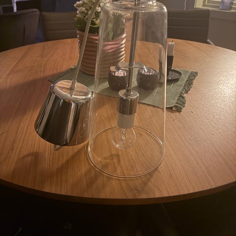 Selger en kul grå gulvlampe, kan bli ca 180 cm høy. Fungerer som den skal.