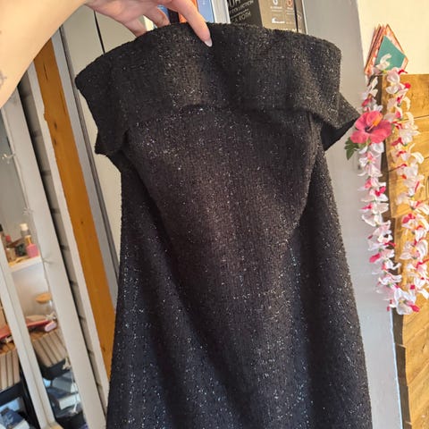 H&M kjole i størrelse 46 . Kjolen er svart og laget av polyester. Den har dekorative detaljer ved halsen .Vil si at det er mere str42