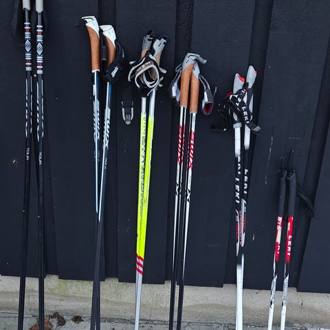 Stavene har klassiske Swix-håndtak, stropper tilpasset barnehender og trinser som fungerer godt på snø. Noe kosmetisk slitasje etter normalt bruk, men ingenting som påvirker funksjon eller sikkerhet.