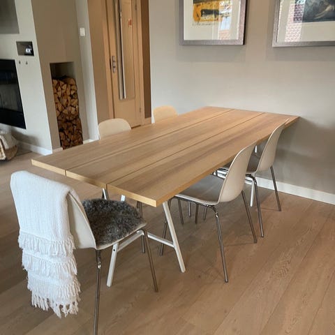 Praktisk bord som enkelt kan utvides ved behov for mere bordplass. Bordet har innebygd uttrekksplate.