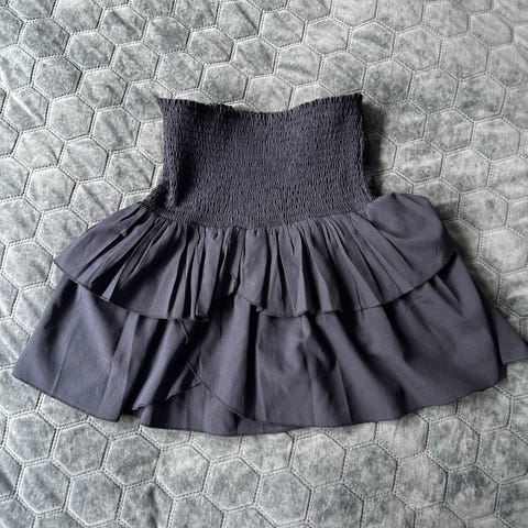 Langt satengskjørt med elastikk på innsiden i midjen. Skjørtet har en veldig smigrende passform. Kvaliteten er en fin glatt satin.