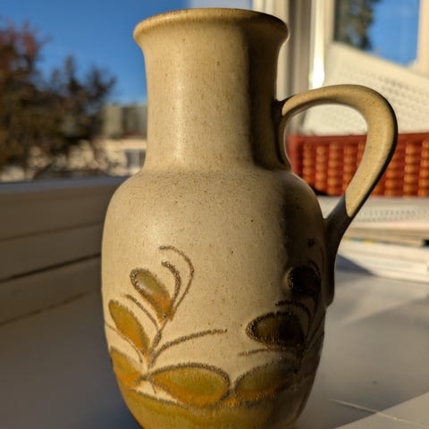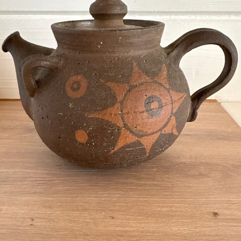 Arabia Otso tekanne i keramikk med integrert sil. Tekannen har en brun og gul blomsterdekor og et lokk med håndtak. Egnet for brygging og servering av te. Uten skader eller feil!