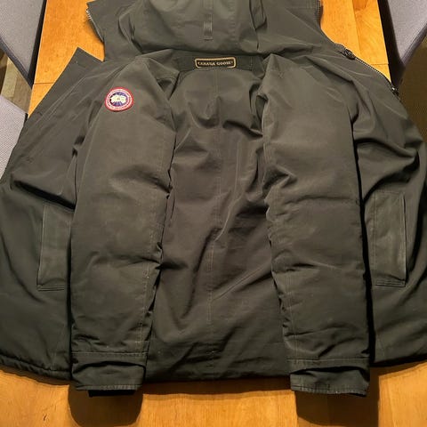 Orginal Canada Goose vinterjakke i størrelse L, farge blå og laget av polyester, nylin og lin. Jakken er beregnet for utendørs bruk og gir beskyttelse mot kalde værforhold. Jakken er 100% hel, pent brukt. Litt falmet i fargen.