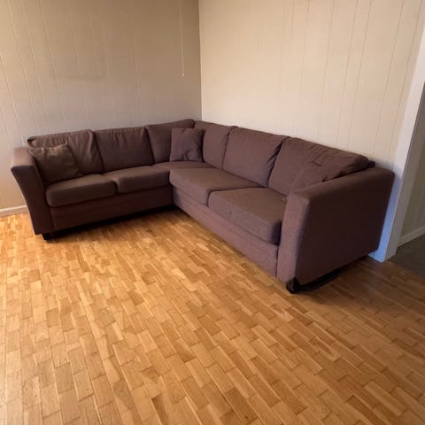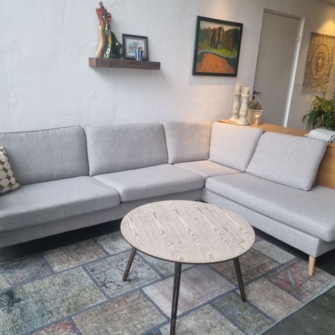 Selger en stilren og komfortabel grå hjørnesofa med sjeselong. Sofaen har et tidløst design som passer godt inn i de fleste stuer, og den er svært behagelig å sitte og ligge i. Mykt stoff og gode puter gir høy komfort.