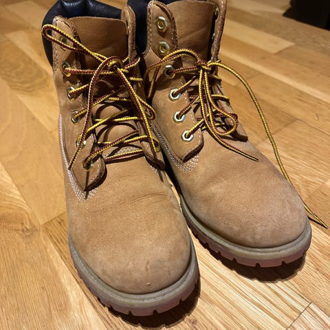 Pent brukte vinterstøvler fra Timberland selges. Det følger med ullsåle for ekstra isolasjon.