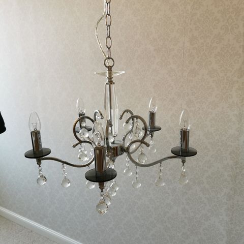 Lyspærer medfølger, 5 meter ledning. Ubetydelig og kort brukt. Kostet 4.500.