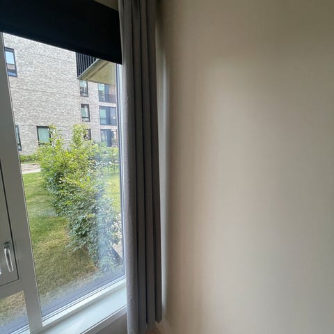 Delvis lystette mørkegrå gardiner selges