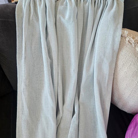 4 stk gardiner 140x230 med maljer. Lysegrå. Bilder er tatt i dagslys og fargen stemmer bra på bildene. Rene og pene.